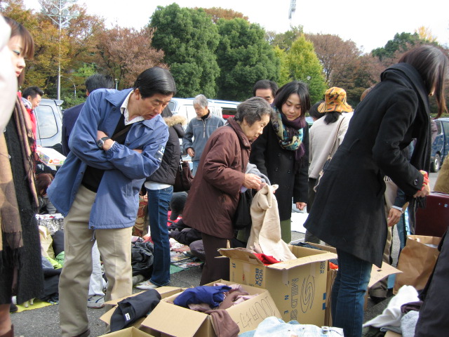 家族や友人に呼びかけて集めた、家庭の不用品や衣類を売りました。
