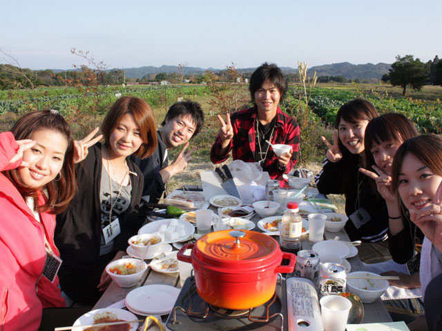 当日は、レンタルファームを一つの村という状況設定にし、グループごとに、さつまいも・にんじん掘り対決、食材ゲット神経衰弱、そして収穫した野菜に感謝の気持ちを伝える豊穣祭ダンスで盛り上がったり、ちょうどお腹がすいた頃には、お待ちかねの野菜と塩だけを使った料理「重ね煮」作り、みんなでわいわいBBQしたりと盛り上がりました。 食欲が満たされたあとには、広大な畑を舞台にウォークラリー、自然・景色を堪能してきました。