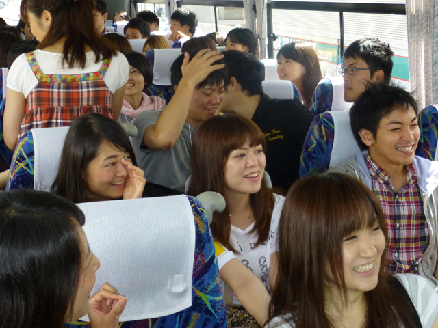 バスの車内は長野クイズや方言クイズで大盛り上がり。飯盒炊飯クイズやキャンプファイヤーの歌の練習も行い、予習はばっちりです。