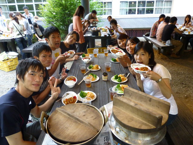 メインコンテンツ!メニューはカレー。ただ作るだけではつまらないということでアクセントとなる食材をゲームでとりあってもらい、料理対決!どの班も工夫がたくさん、本当においしいカレーばかりでした。