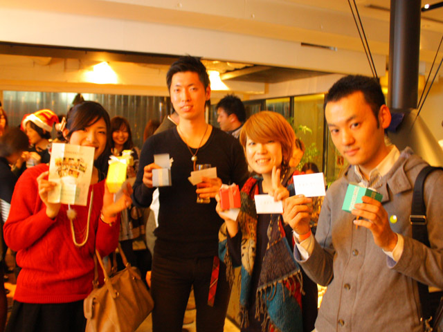 ここで、サンタさんが登場!小さなプレゼント箱が参加者へ届けられます。 しかし、これで終わらないのが+oneサンタ。 プレゼントにはサンタから「このプレゼントは○○さんに渡してください。」との指令が。