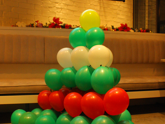 なごやかな空気のなか、参加者が一体となっての風船を使ったクリスマスツリーづくりからパーティはスタート! 風船ツリーの完成と同時に、華やかに乾杯の声が響きます。
