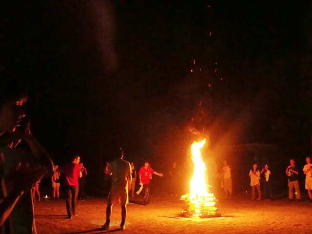 夜も更けてきたところで、キャンプファイヤー開始です。燃え上がる炎をみんなで囲み、フォークダンスをして盛り上がりは最高潮に。しかも、今年の『学校へ還ろう』は七夕です。「七夕にみんなと一緒に最高の星空が観たい」というみんなの願いが通じたのか、天気にも恵まれ、くまの木で開催する『学校へ還ろう』4回目にして、初めて星空を観ることができました。夏の夜空に星が瞬き、色んな思いが込み上げてきました。