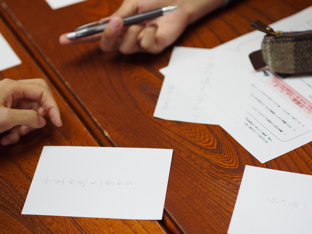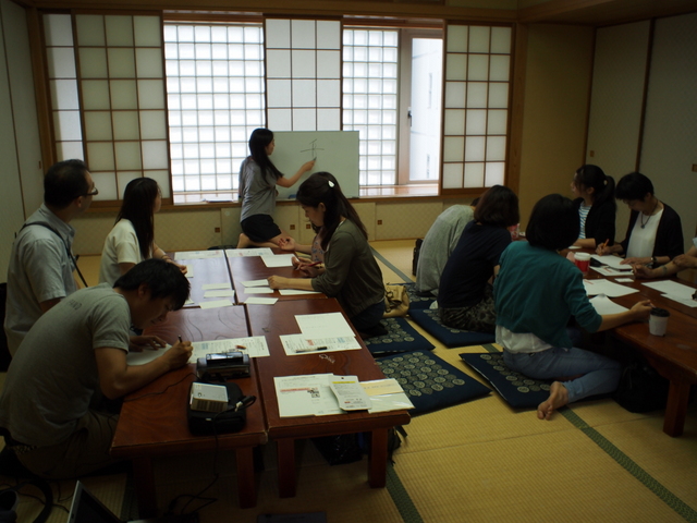 最後は、正座して、姿勢を正して、深呼吸とともに自分のペースでペン字の練習。 ゲストの方同士の話も弾み、うまく書けないところは先生へ質問したりと、 終始和気あいあいとした雰囲気。