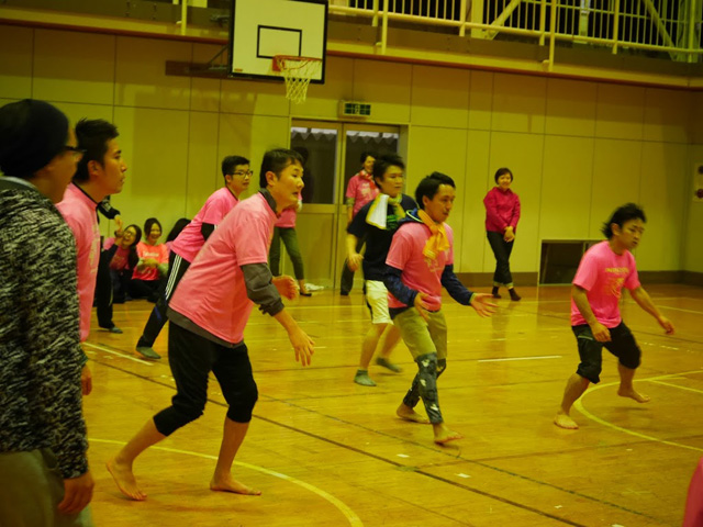 2日目はいよいよ文化祭本番! 朝の散歩では、学校の近くの河原まで歩き、文化祭で使えそうな小道具の材料を探しました。 朝食の後は文化祭の練習を再開。 前日に決めた配役のセリフを、夜のうちに全部覚えてきている生徒もいて、各クラスの練習に熱が入ります。
