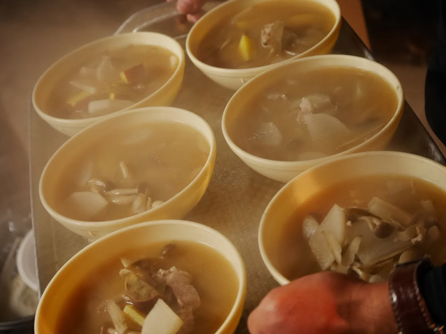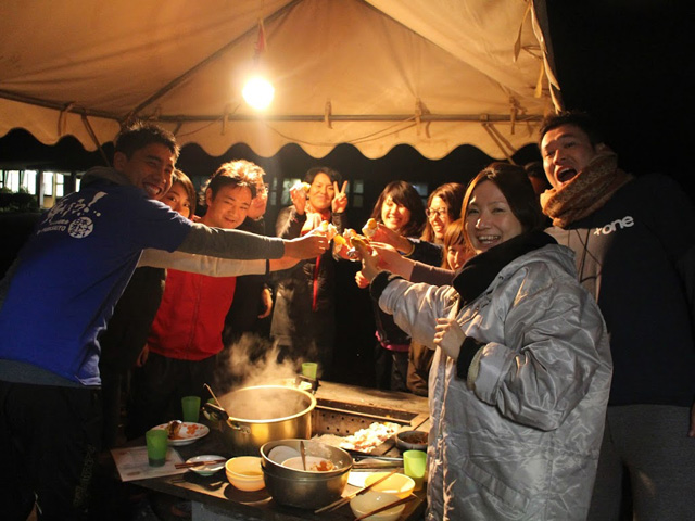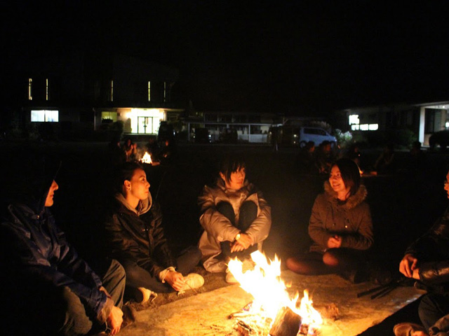 夕方となりあたりが薄暗くなり始めたころ、次の授業の調理実習へ。 屋外のバーベキュー場で、クラスに分かれ、火起こしから始まります。 炭でサンマを焼いたり、めった汁(石川県の郷土料理で、さつまいもの入った豚汁)を作ったり、なかなか沸かないお湯に悪戦苦闘しながらも、みんなで作ってみんなで食べた食事は格別のものでした。 さらに、今回はピザ釜を使ってピザを焼く体験もできました。 自分たちでトッピングしたピザを、スタッフと一緒に自分たちで焼き、アツアツのピザを食べました。 最後は、クラス自慢のめった汁で料理対決! 審査員の先生からの優勝の発表はドキドキもので、似たような素材で、同じレシピで作っているのに、クラスごとに全然味が違うことに驚かされました。