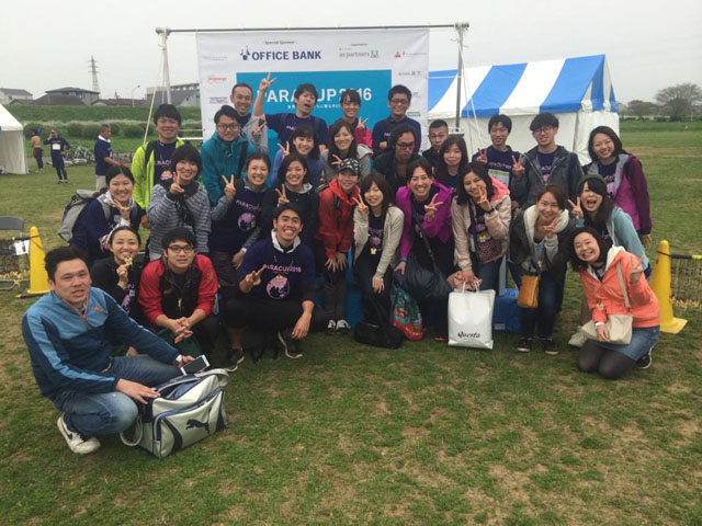 4月10日(日)、多摩川の古市場競技場で行われたチャリティマラソン大会「PARACUP 2016 ~世界の子供たちに贈るRUN~」にて、今年も共催団体として参加いたしました。