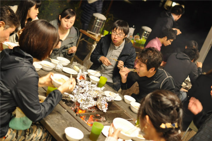 今回のメニューは、懐かしの飯ごう炊さんと芋煮、旬の食材を使ったバーベキューです。実は、体育の順位でメインの食材(牛肉・さんま・鶏肉)が選べるようになっていて、 クラスごとに決めた食材で試行錯誤しながらも、美味しい夕食が出来上がりました。同じレシピでも芋煮の味が違うなど、発見もありました。