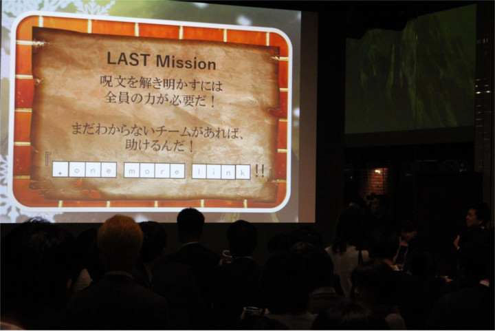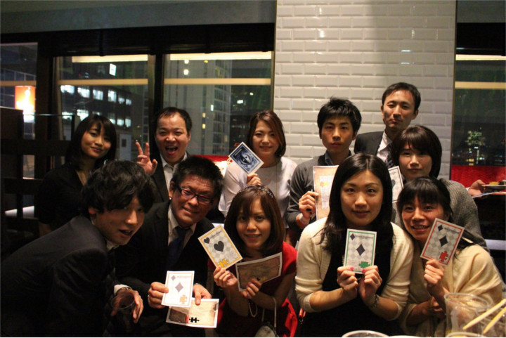 第1のミッションは「同じ色の同じカードで仲間になれ!」。受付と同時に配られた招待状には、それぞれ色がつけられています。 同じ色の招待状を持つ4人とグループを作り、次のミッションを受け取ります。
