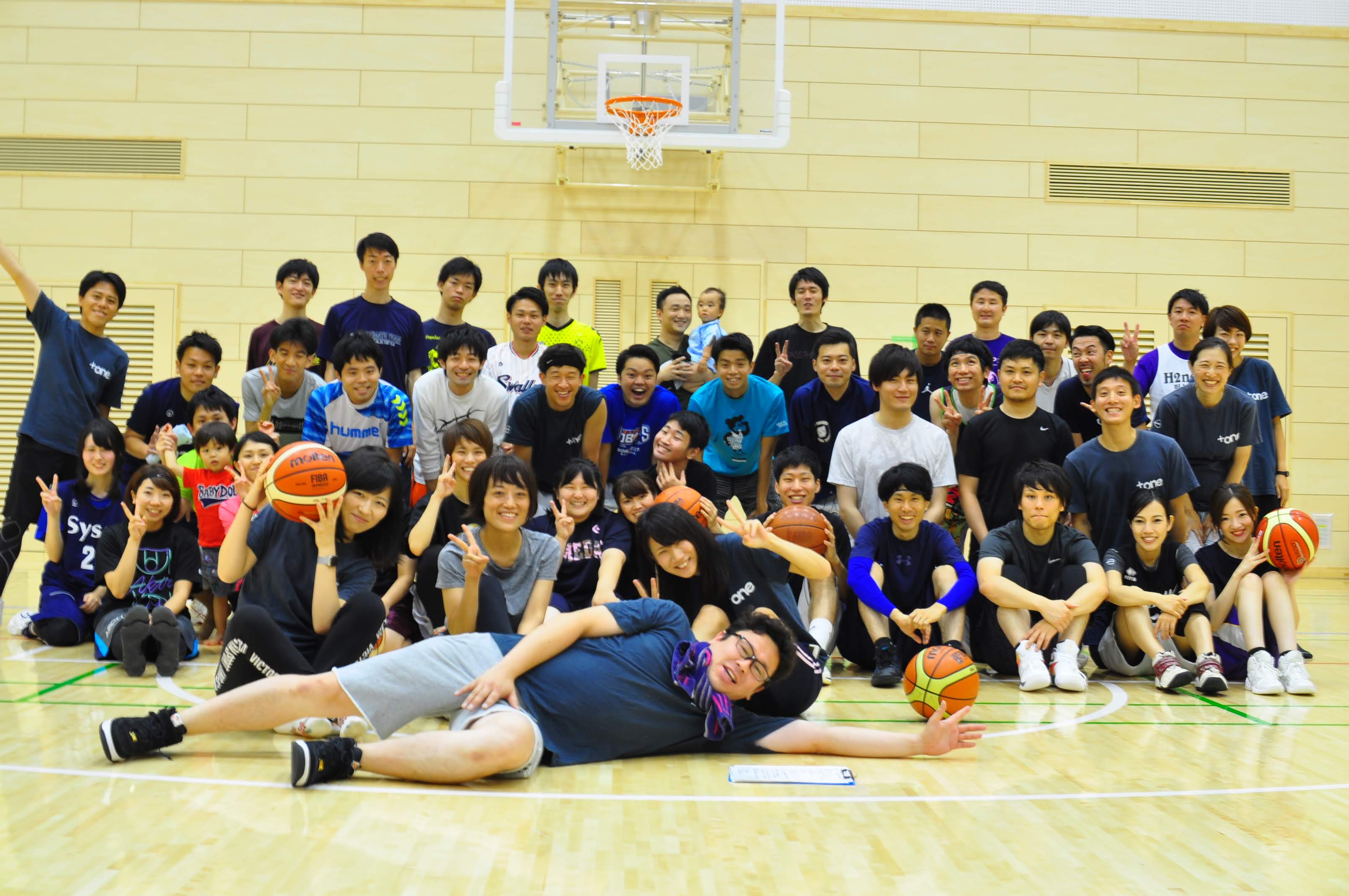 当日は、総勢50名近くのユニフォームをそろえているチームや、当日初めて会う個人参加チームなど、バスケット好きのみなさんに集まっていただきました。