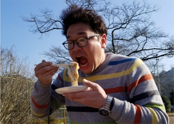 なかなか餅が固まらず皆で力いっぱいつき続けましたが、最終的にはトルコアイスのようなお餅に…。 でも味はおいしく、大根や納豆、きなこ、あんこと多彩な味付けのおかげでお腹いっぱいに。一緒に食べた温かい豚汁も最高でした。