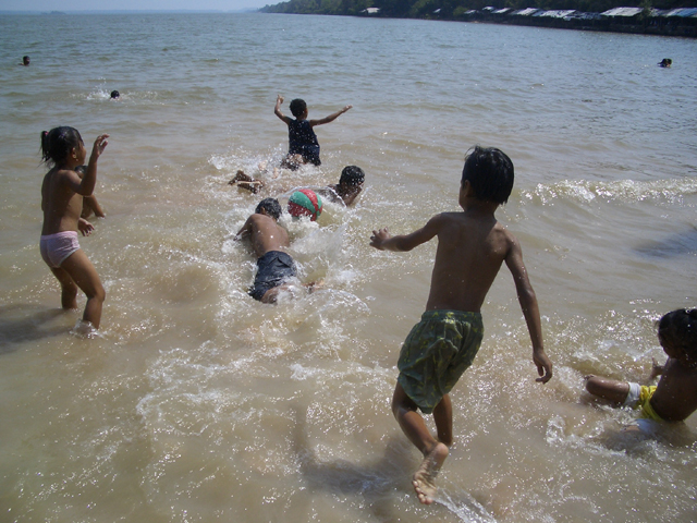 西バライへ到着すると、水の中で泳いではしゃぎまわる男の子たち。 浜辺ですいか割りに夢中になる女の子や小さい子たち。 思い切り体を動かして遊んだあとは、おいしいお昼ごはんを食べてのんびり休憩です。