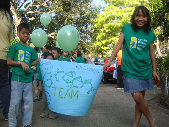 フィリピンでの1日目は、朝7時からの運動会でスタートしました。4チームに分かれての対抗戦。子どもたちはいつもに増して、大はしゃぎ。綱引きやバスケットボール、10メートル程の竹の棒のてっぺんにある旗を取るために競い合う…など、さまざまな種目が用意され、応援する子どもも競技に挑戦する子どもも一体となって盛り上がりました。