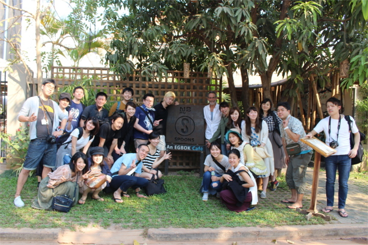 今回は調査プロジェクトの一環で、シェムリアップにある職業訓練校「EGBOK」を訪問しました。ここはアメリカのNPO団体が立ち上げた施設で、+oneとして訪問するのは2回目です。今回は、責任者であるマイケルさんのお話を伺いながら構内を見学しました。ここで学ぶ生徒たちの約8割は、郊外の貧困地域から出てきた子どもたちです。サービス業に必要なホスピタリティのスキルを学ぶ場ではありますが、生きていく上で必要な知識すら教わってこなかった子どもたちが多いため、Life Skillも教えていくのが「EGBOK」の特徴です。