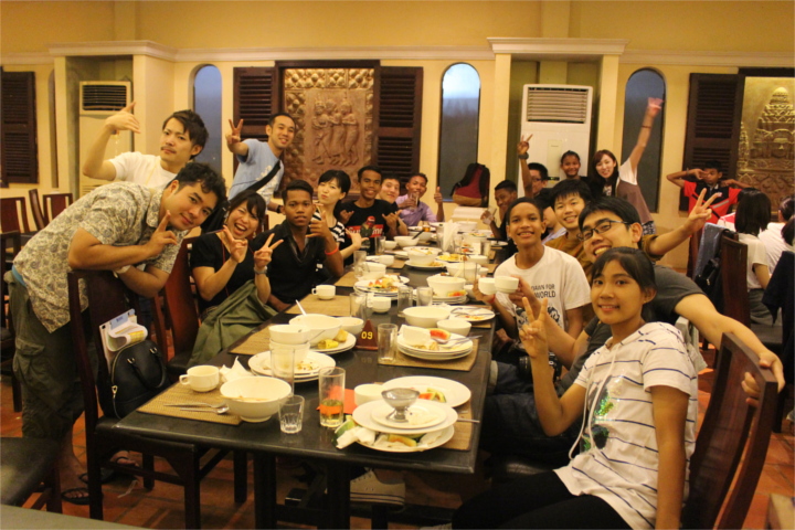 夜はみんなが大好きなレストラン、トンレメコンへ。ここへ来ると、毎回子どもたちの食欲に圧倒されます。いろいろな話をしながら食事をする時間は、本当にかけがえのないもの。また毎年恒例、子どもたちからツアーに初めて参加したメンバーに辛い調味料を食べさせるドッキリも大成功! 子どもたちの笑顔がきらきら輝いていました。